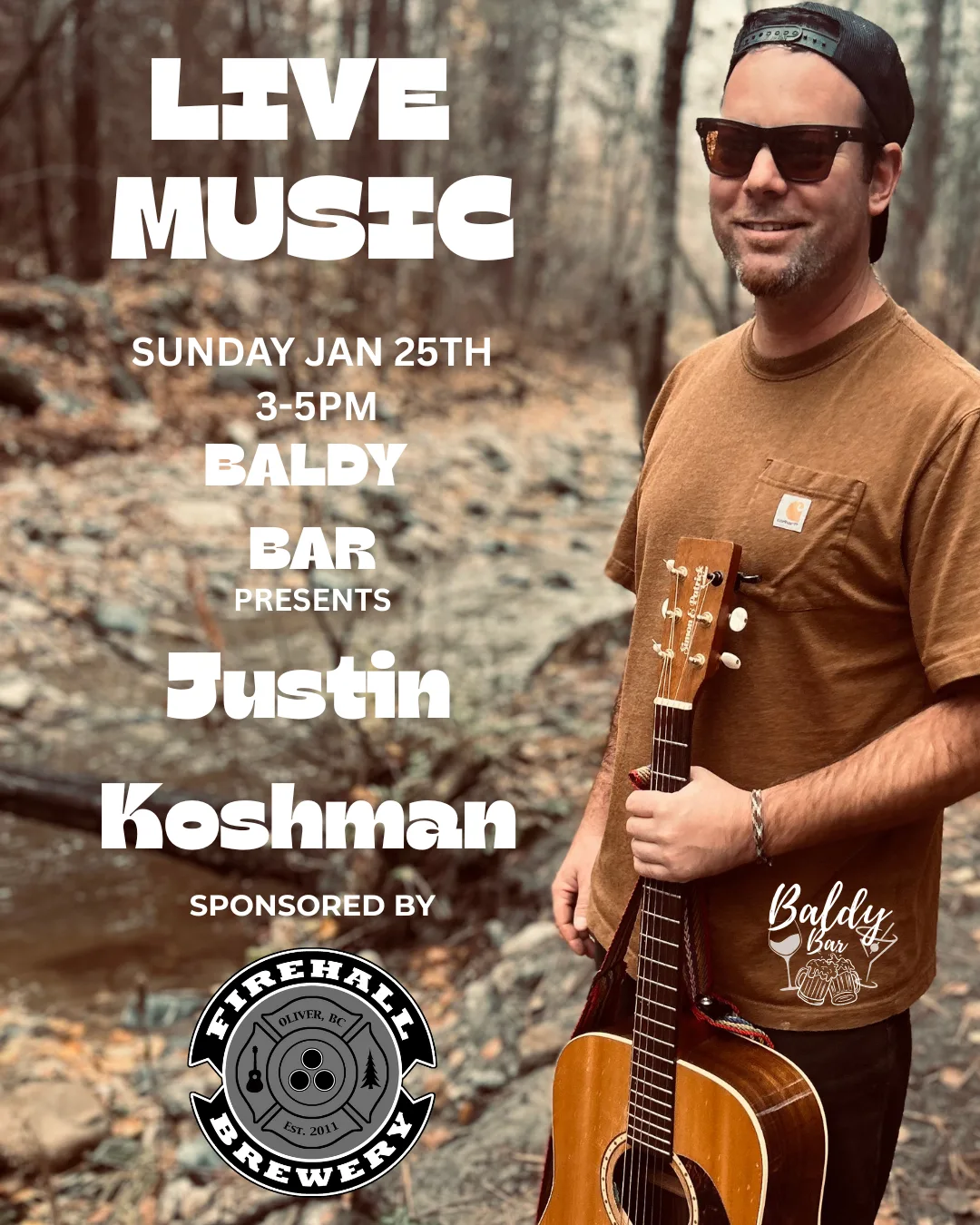 Justin Koshman is a singer songwriter based out of OK Falls British Columbia. He blends folk music and a splash of beach rock blues to every set. You can find him playing throughout B.C. either in markets , wineries, or pubs telling stories and singing original tunes .