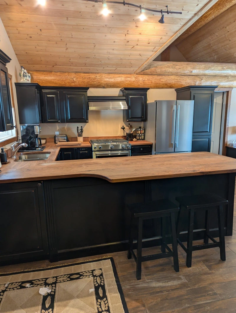 Introducing Tinhorn Lodge, the newest accommodations available at Baldy Mountain Resort. This exceptional locally built “last ever” hand crafted Rasmussen Log Chalet was sourced from OK Falls and specifically constructed by sought after talented local builders, Wayne and Neil Dennill and finished by Katlin Jones.